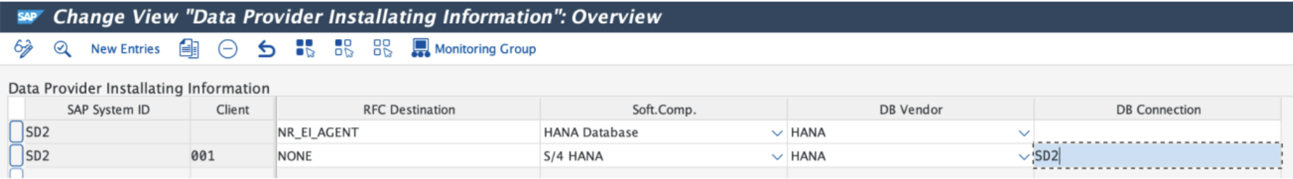In v2.5, because the database connection is handled by the Java Enterprise Connector, the HANA_DB monitoring group is normally set up separately from the rest of the data providers. In v3.0 this is no longer necessary. The separate configuration line connecting to Java Enterprise Connector (normally RFC destination NR_EI_AGENT) should be removed.