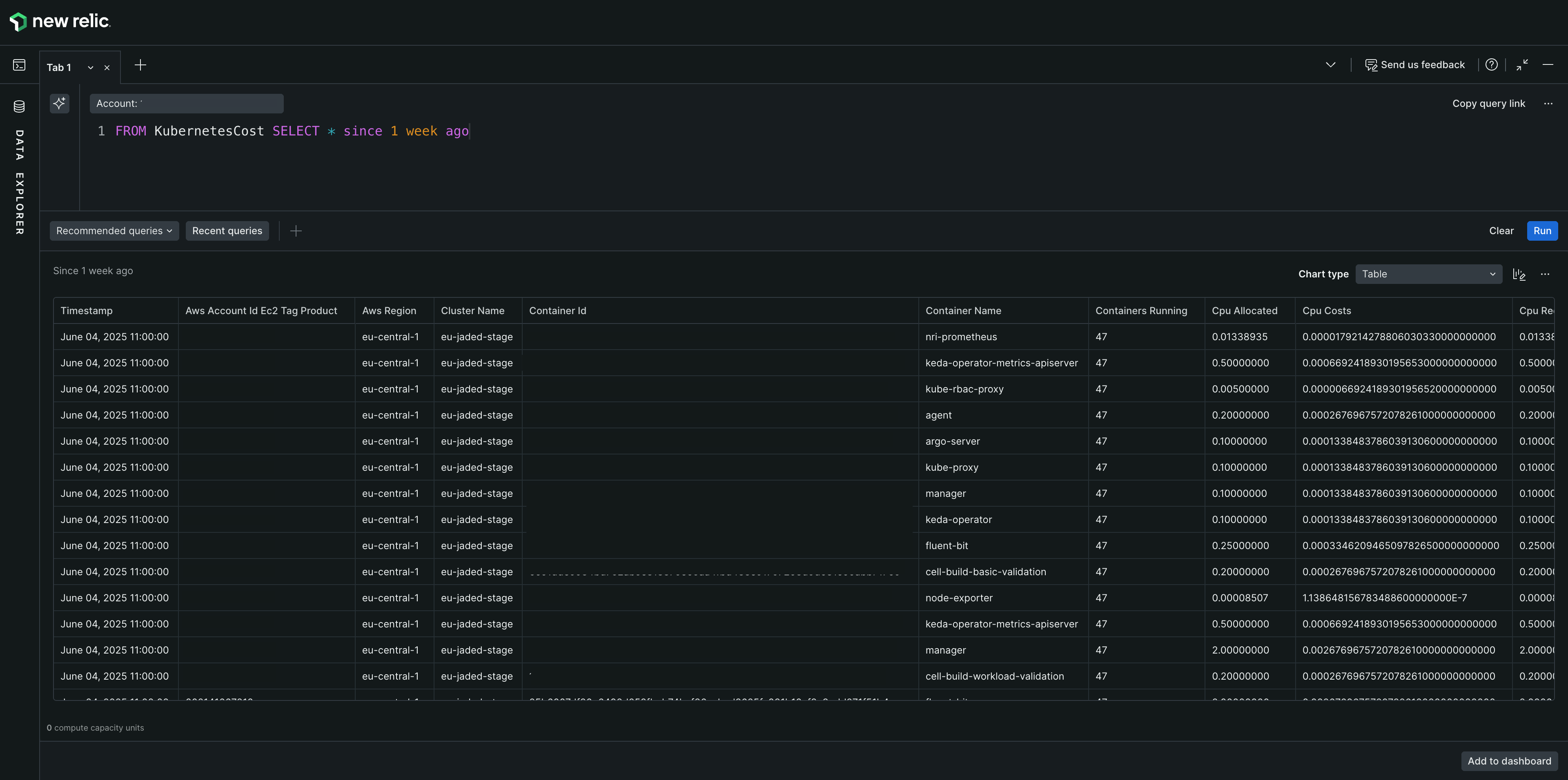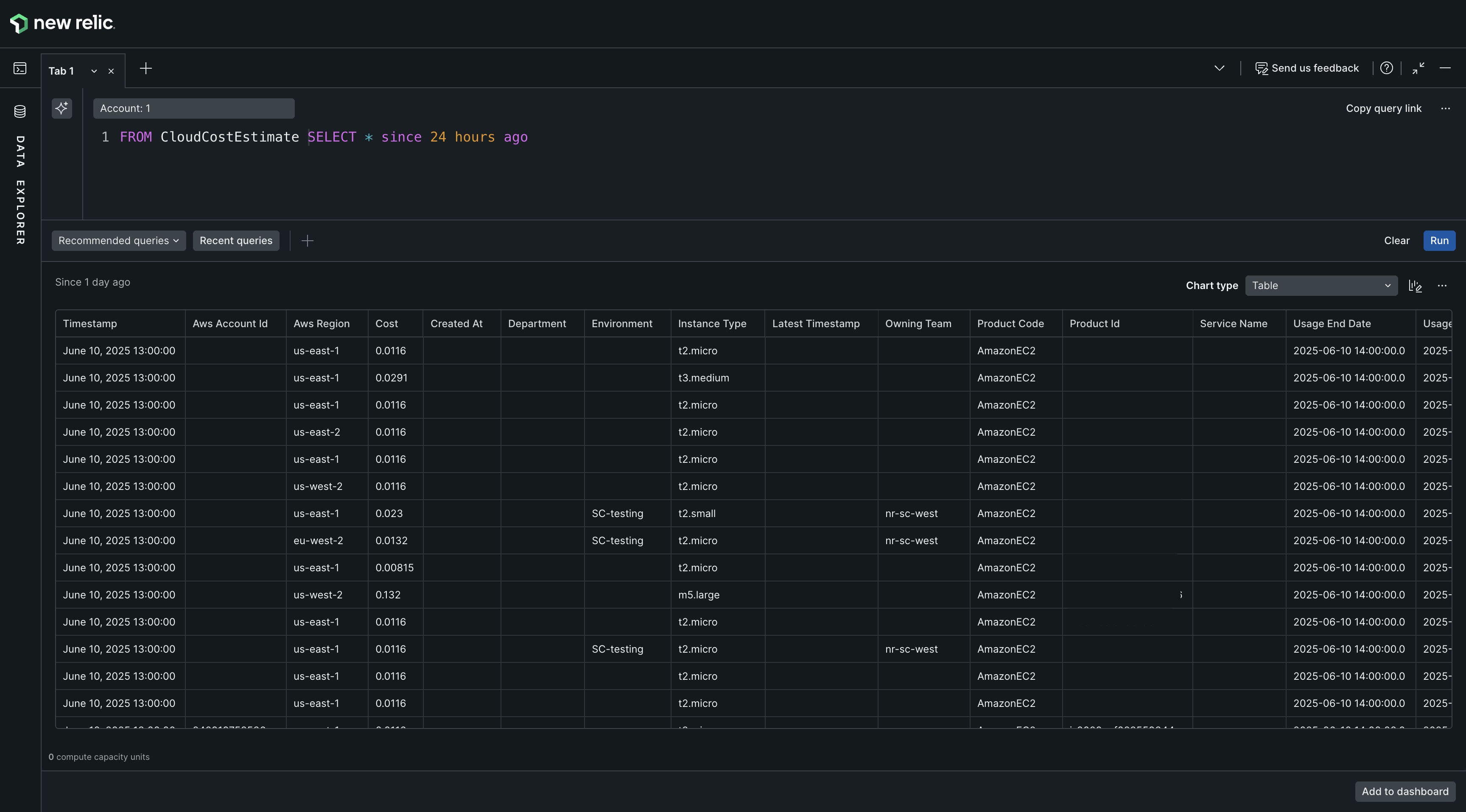 Let us consider the following NRQL query to understand how to query your data for Cloud Cost Intelligence: