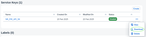 Click the ellipsis (...) next to your instance, then click Create Service Key.