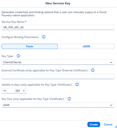 Enter a Service Key Name and Key Type: ClientId/Secret.
