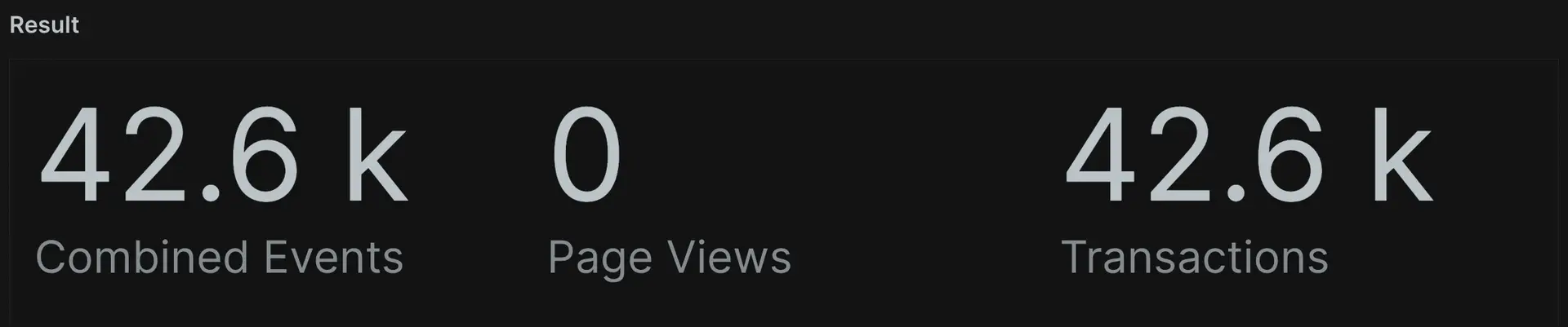 People often wonder how to calculate the bounce rate on front-end monitoring. This refers to sessions that view a single page, and "bounce" away before visiting more pages. With nested aggregation, you can achieve this easily. Our inner query counts the PageViews, grouping them by session. The result set passed to the outer query lists all the sessions and how many pages each viewed. The outer query then calculates the percentage of sessions with a count of 1 (this indicates a "bounced session", because they only viewed a single page).