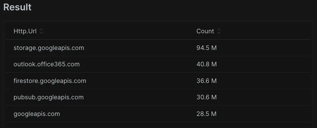 WHERE http.url IN ('graph.microsoft.com', 's3.amazonaws.com')