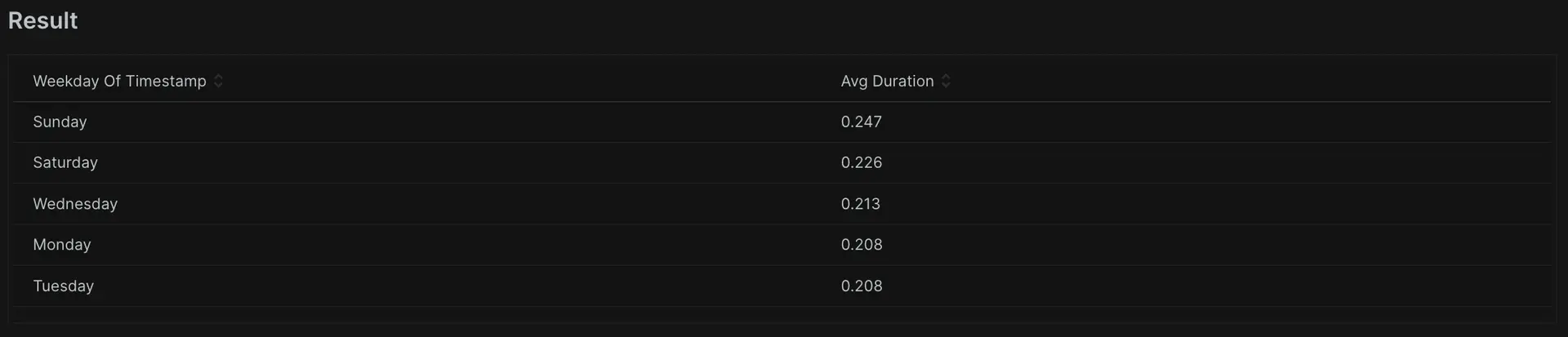 Now you can see the slowest periods of your applications on any specific day. You could use this to answer business-critical questions like "When do we sell the most products?", or "When do we have the most sign-ups or logins?".