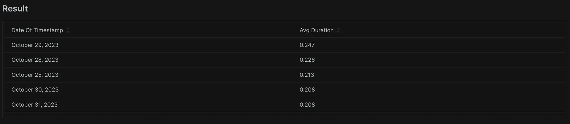 Great! You just performed some basic math. This is useful to help you list individual events. But what if you want to know the average duration of transactions without the database time? Conveniently, you can do the arithmetic within the function: