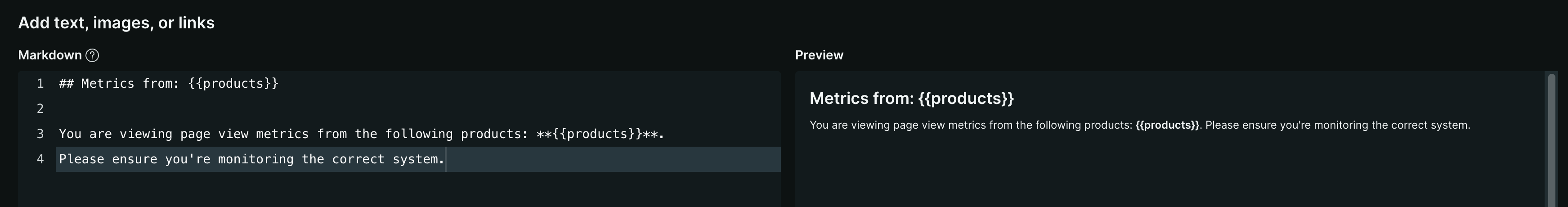 Once you've defined your template variable, you can add a widget that uses your created template variable.